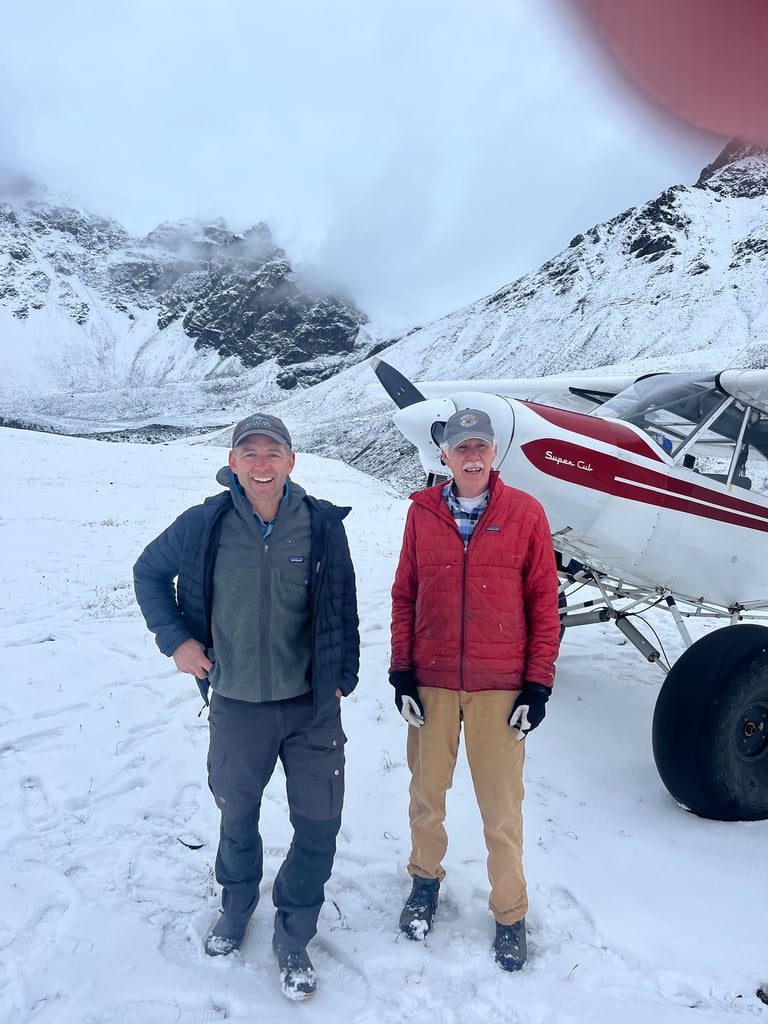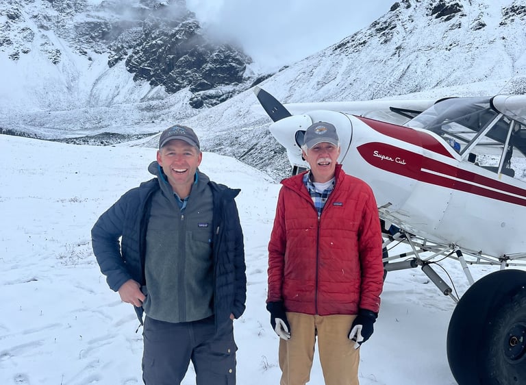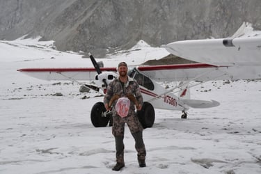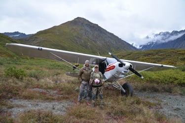 Austin and Dorothy Meekin homesteaded at Sheep Mountain in the 1940's where Austin was a big game guide. Mike Meekin was born the 3rd of 6 children in 1952. He grew up guiding on horse back in the Talkeetna and Chugach Mountains. In the late 1970's Mike started using a Super Cub to access the hunting grounds. Mike and Diane were married in 1981 and Samantha was born the 1st of 4 daughters. In 2002 Samantha married Matt Keller who has been working alongside Mike at Sheep Mountain ever since. In 2025 the difficult task of scheduling hunters has been handed to Matt. I pray I can provide the same reliable service Mike has for the last 45 years.